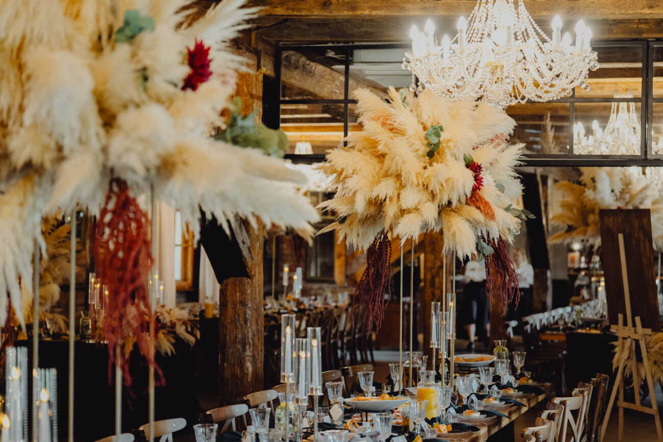- 15 pampasowych dekoracji na stoły