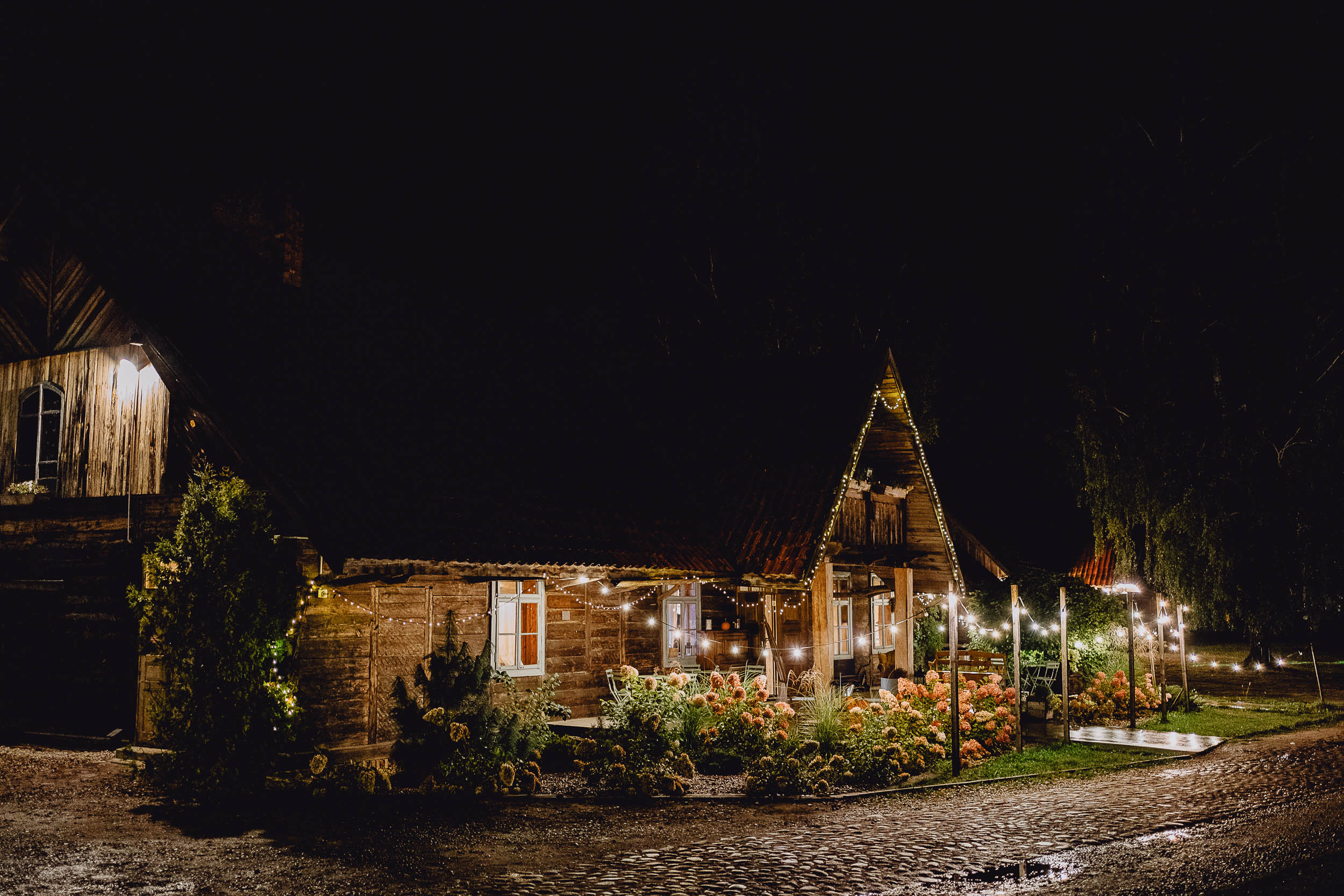- Klimatyczne oświetlenie całej stodoły