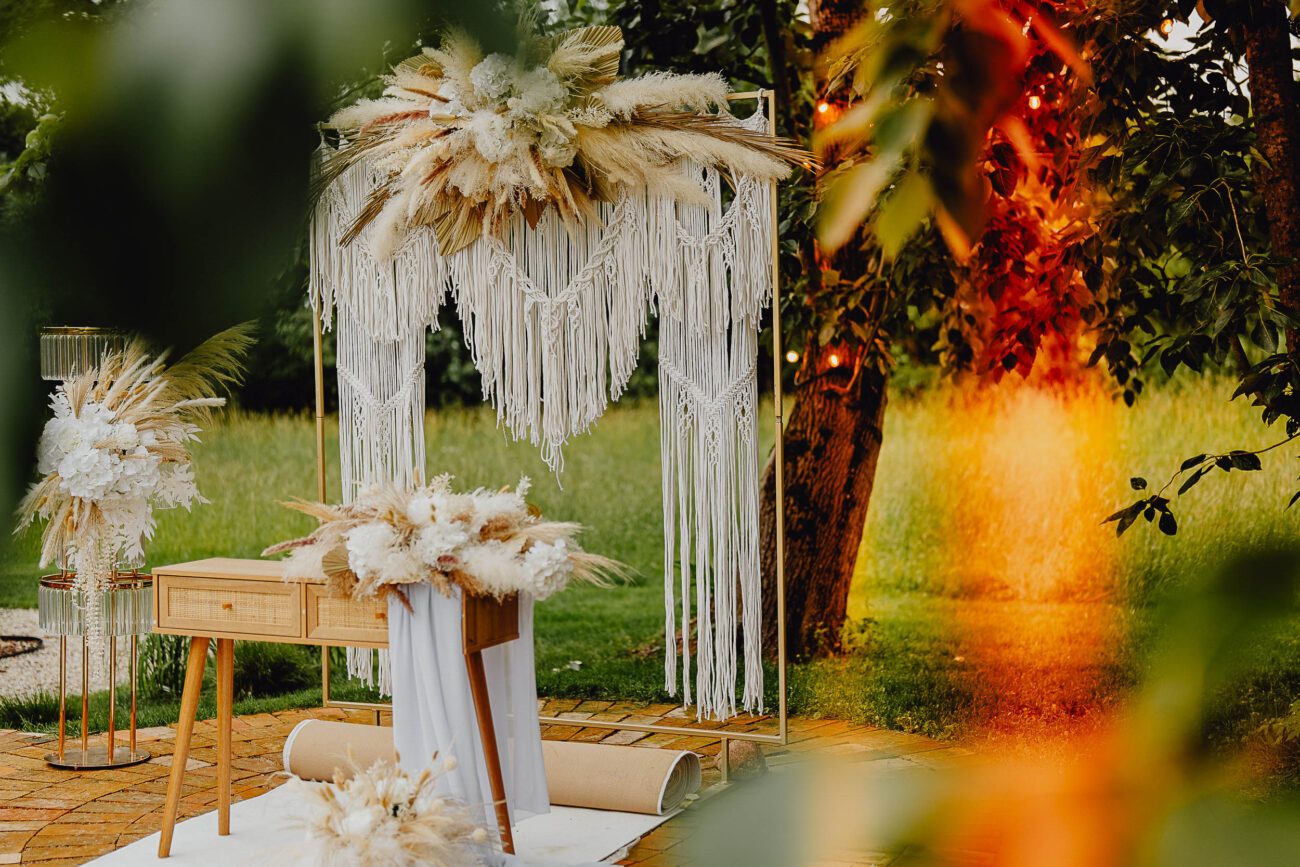 - boho – różnego typu makramy i inne wyplatane, koronkowe dekoracje. Tu dobrze łączy się klimat cyganerii.